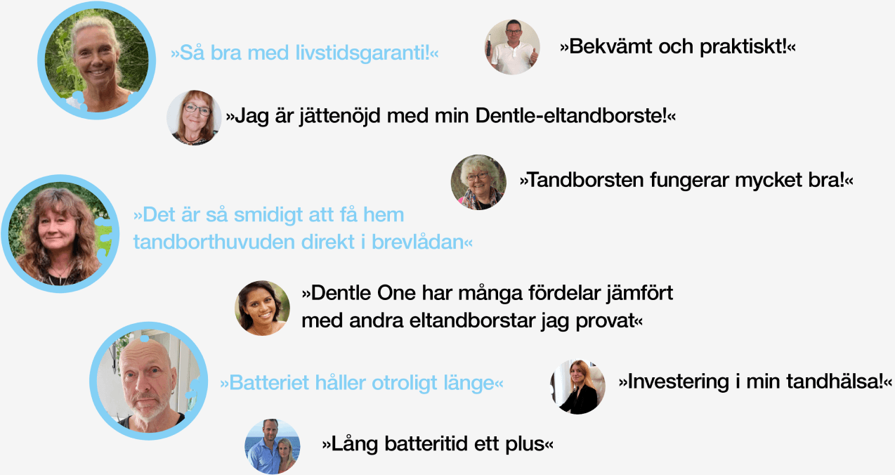 Jag har varit kund hos Dentle i massor av år och är helnöjd. Tandborsten bara går och går och borsthuvudena ramlar in i brevlådan i den takt jag själv väljer.